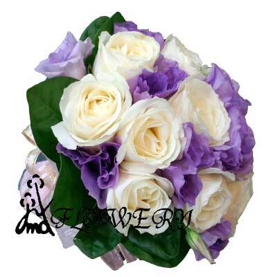 主要花材:白玫瑰9朵桔梗及綠色配材