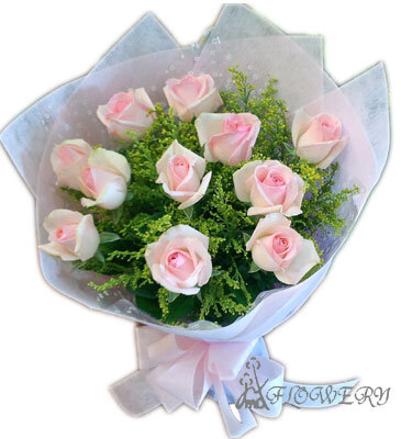 主要花材:玫瑰11朵,及綠葉配材