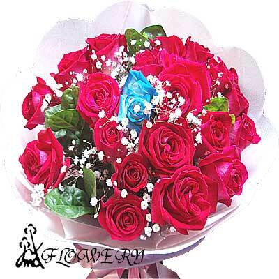 愛情郵差-fa6690(東方之星玫瑰花束) 紅玫20朵加上藍玫1朵,傳遞妳是我唯一的最愛!