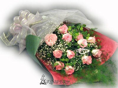 主要花材:玫瑰12朵、滿天星、新文竹