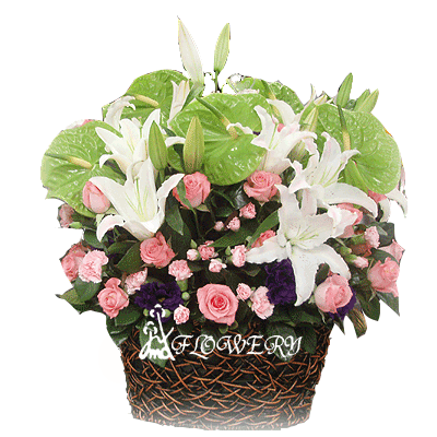 主要花材:火鶴.玫瑰.百合.康乃馨及綠色配材
