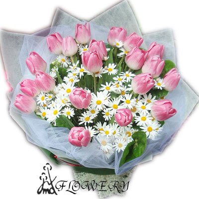 主要花材;鬱金香20朵,瑪格麗特及綠色配材
