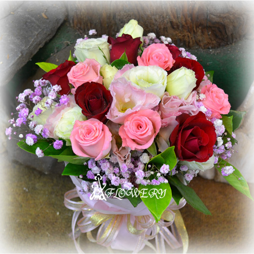 主要花材:玫瑰,桔梗,滿天星及綠葉配材