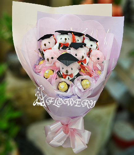 品名:h2161-博士熊畢業花束+金莎巧克力畢業精選花束